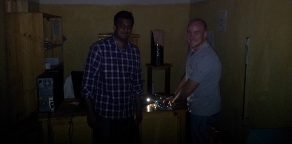 We had some fun and games this weekend with heavy rain and no power for some stages, having the team working on the UPS for the server to get as much time as possible on the systems. We spent a good bit of Saturday working on patching together a network infrastructure in the interim (the MoH will rollout the updated network later on). There was an atmosphere of adventure with the guys working in the dark / by monitor light / by phone-torches, taping cables in place, checking network points, installing temp switches, pushing to get the internet connected and available through the Health Centre, not to mention the continued testing and tweaking (finding and fixing bugs) that come up when you lay down code in a real world setting.